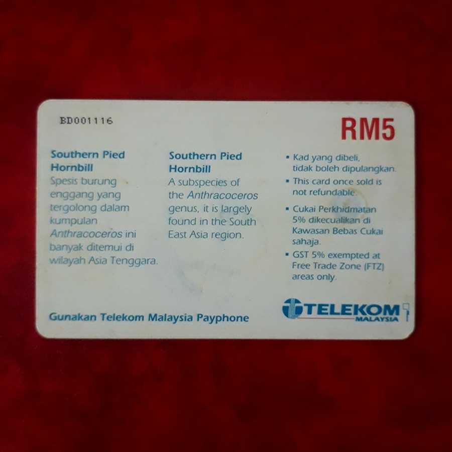 Gambar : Burung EnggangKeluaran : Telekom MalaysiaNominal : RM5Kondisi : Used, mulus