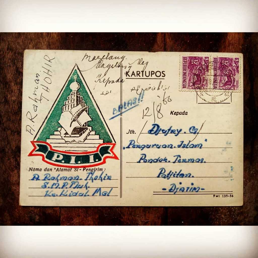 Salah satunya kartu Pos organisasi kepemudaan "PII - Pemuda Islam Indonesia", salah satu organisasi kepemudaan yang menyokong salah satu partai islam terbesar saat itu " MASYUMI". Namun organisasi PII dibubarkan oleh pemerintahan era Soekarno tahun 1963 dan dianggap sebagai organisasi terlarang.