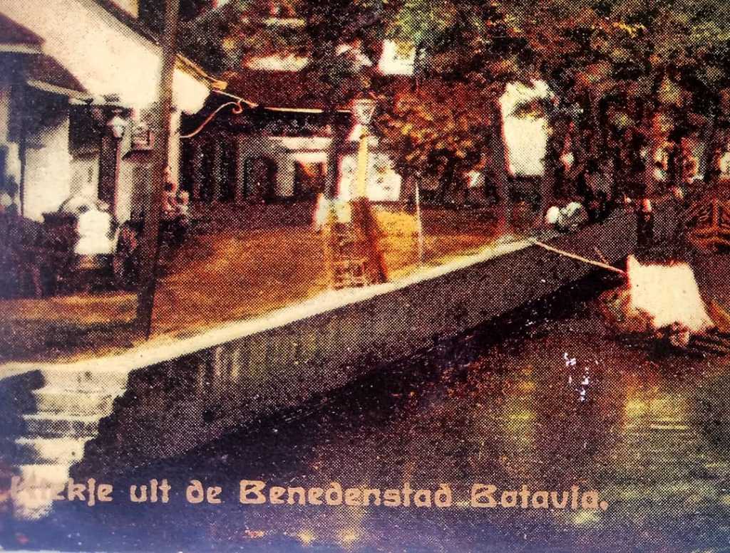 Kartu pos antik, suasana daerah "Kali Malang - Batavia".