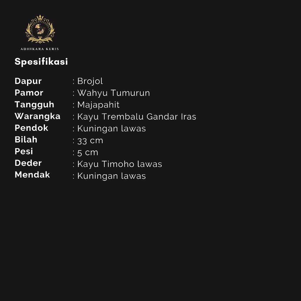 Keris Majapahit Dhapur Brojol ini sebelumnya dimiliki oleh salah satu Keluarga yang ada di Kota Surakarta.