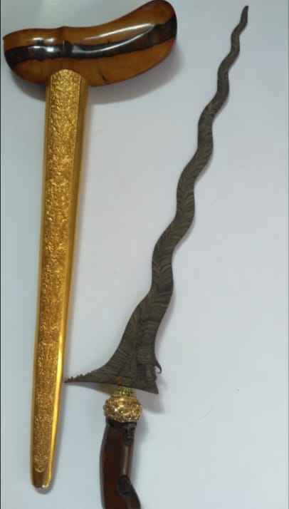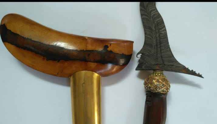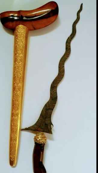 Keris antik, pamor blarak, warangka kayu timoo kendit, pendok perak selut perak, mendak perak