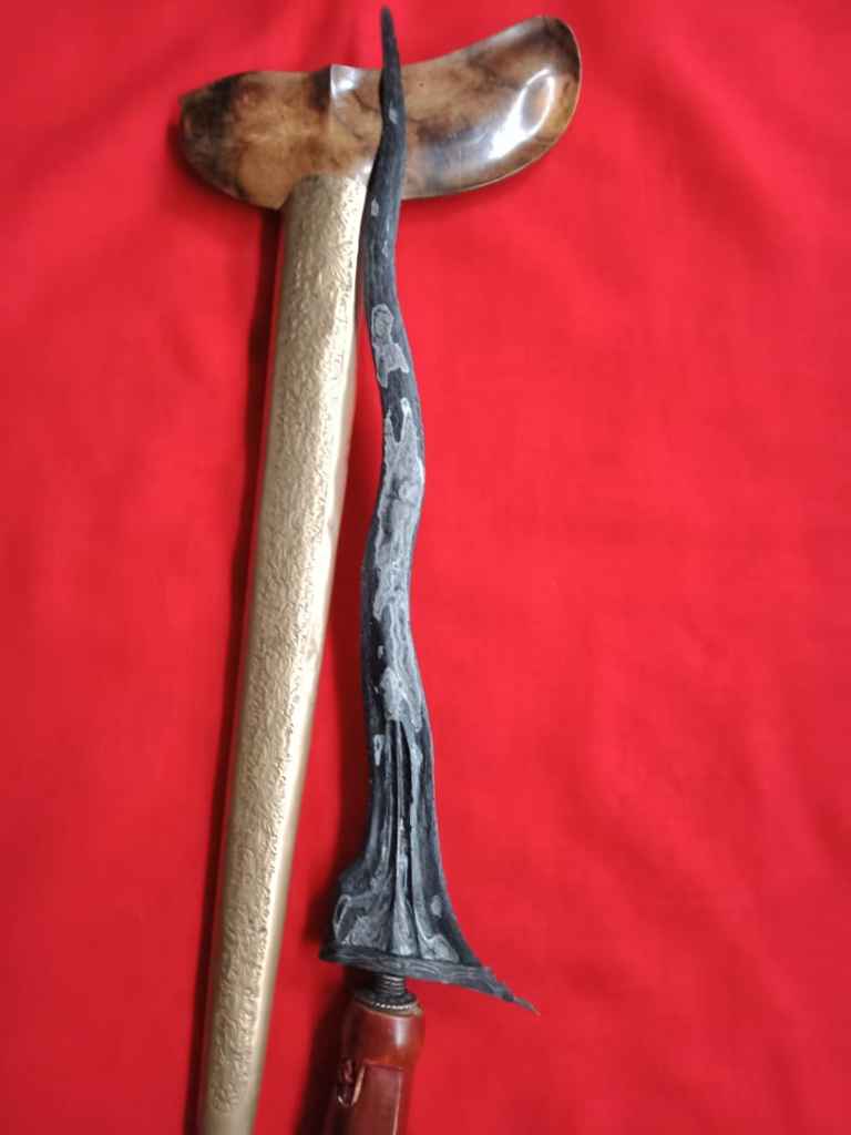 Keris senopaten pamor Pulo Tirto dapur dolog rongko kayu timo..