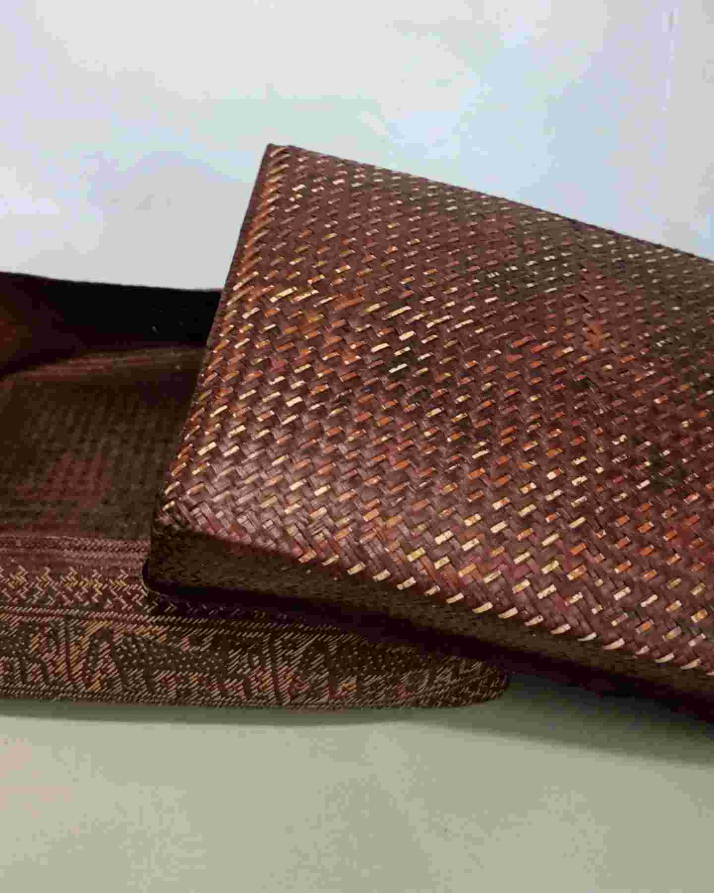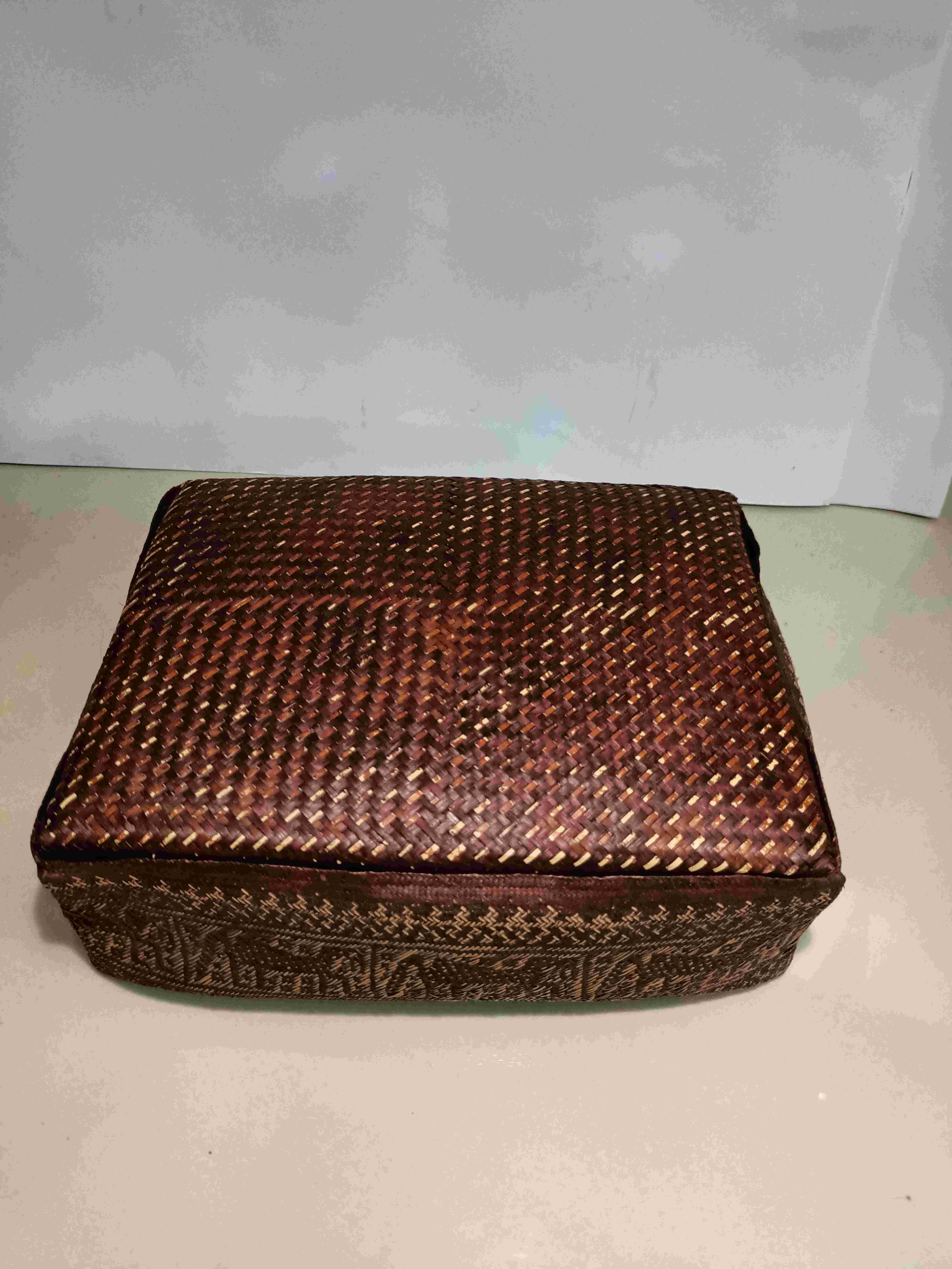 Kinangan , Tempat kinang dari Dayak Kalimantan Bahan rotan ,tua pengerjaan sangat rumit unik Size T.8 cm P.23 cm L.17 cm