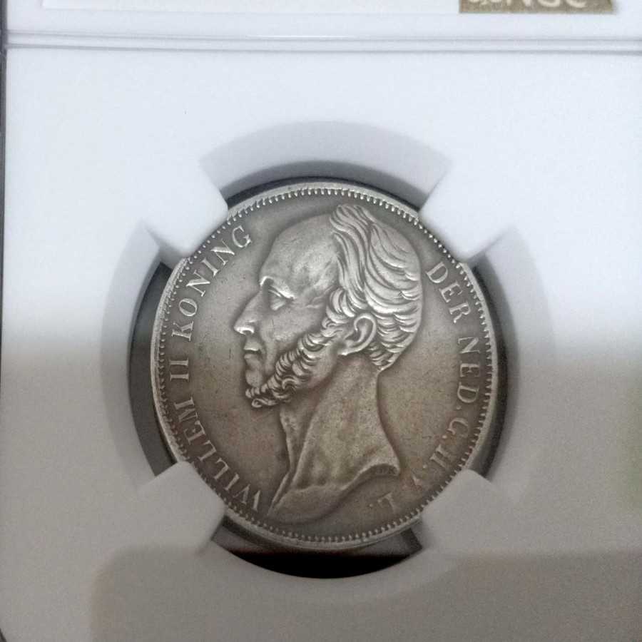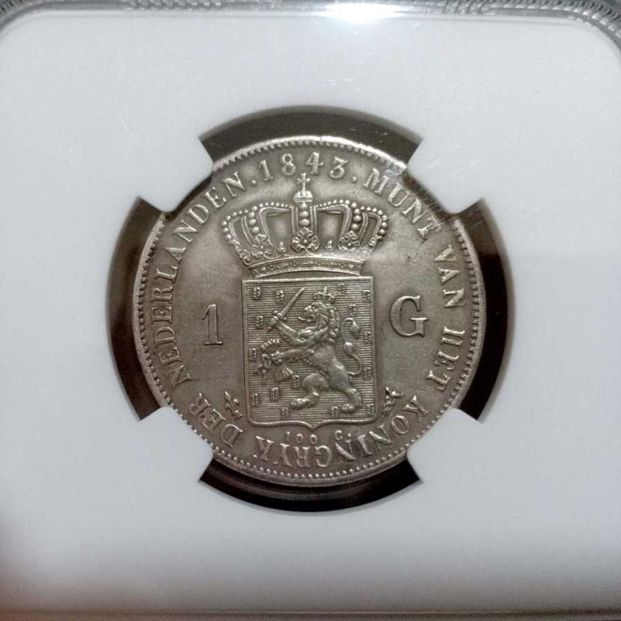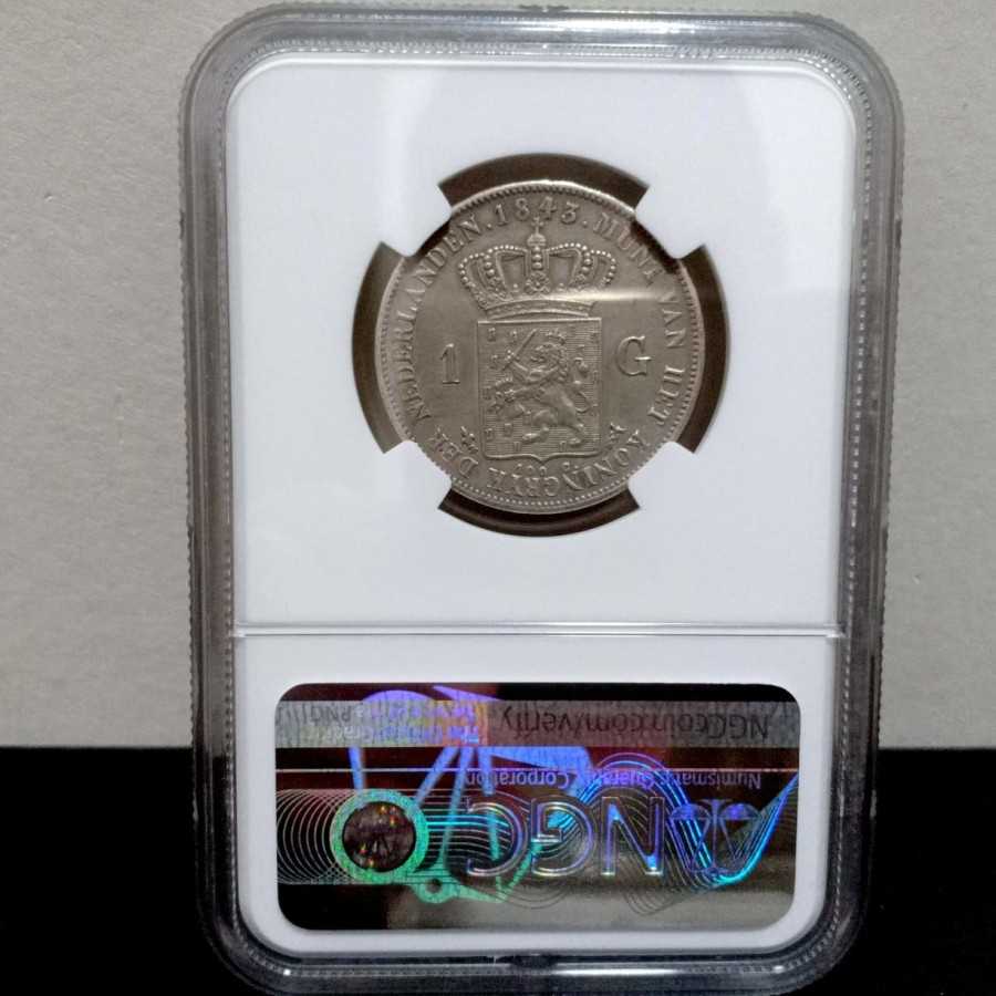 Koin Kuno Willem 2 Netherland 1 Gulden 1843 NGC AU Detail Sangat Bagus