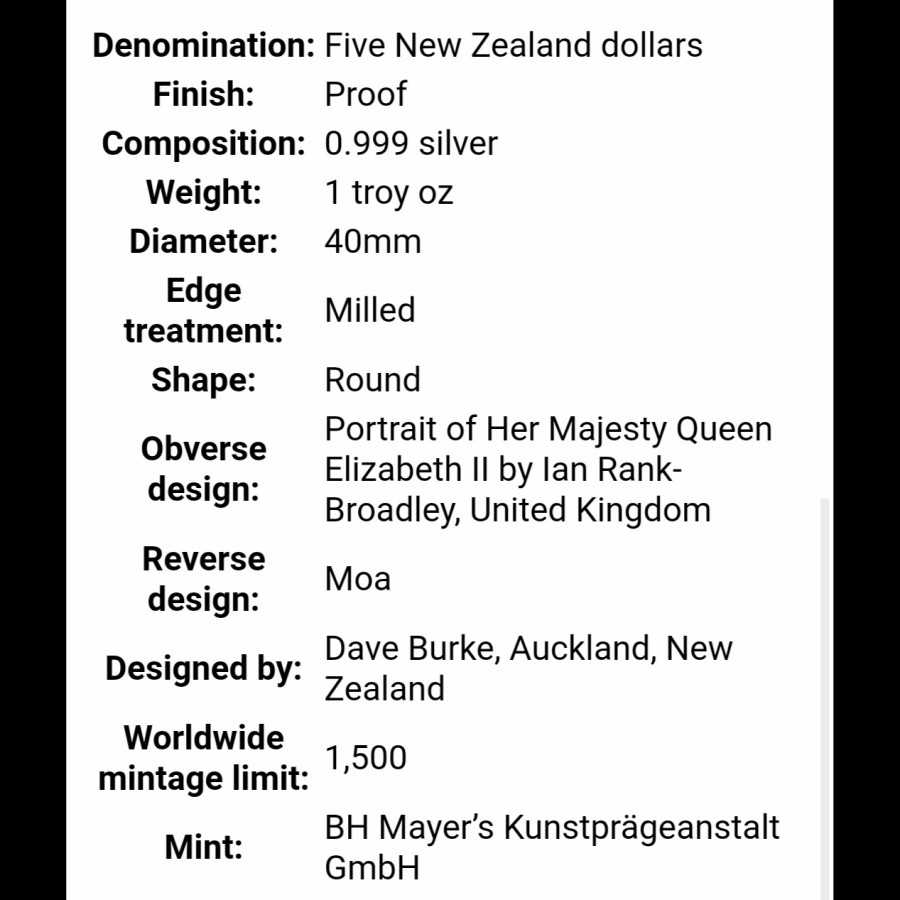 Koin Perak New Zealand Moa5 Dollar1 OzKondisi UNC bagian Belakang sedikit YellowingLimited edition Only 1500 PcsReady Stok