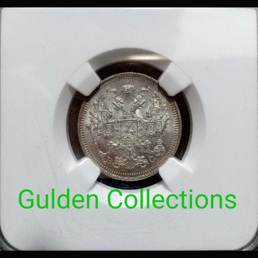 Koin Perak Rusia 15 Kopecks 1915 NGC MS 64