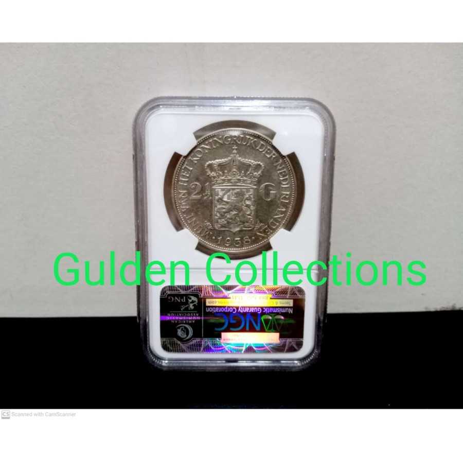 Koin Wilhelmina 2.5 gulden 1938 Rambut kasar NGC AU 50 koin perak