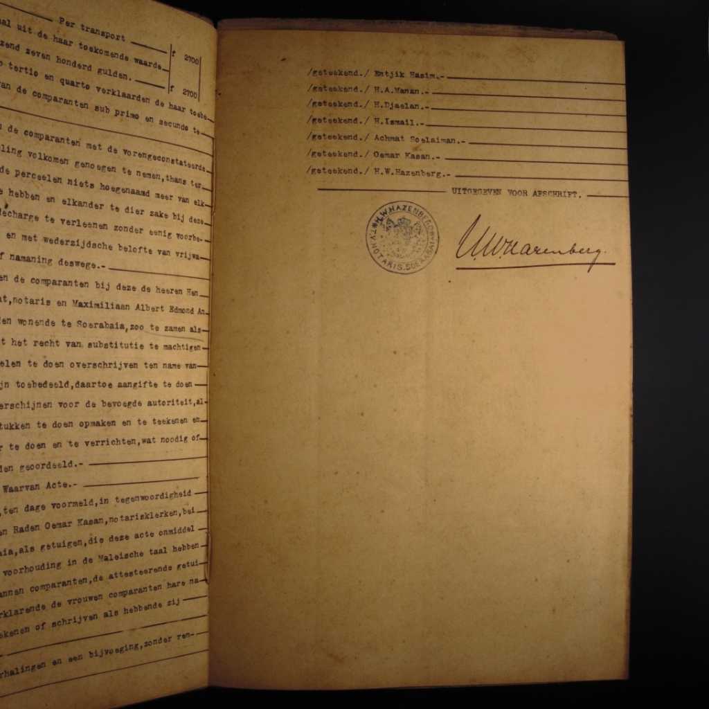 Saya Hendrik Willen Hasanborg berdasarkan keputusan Direktur Kehakiman tanggal dua puluh tujuh Februari seribu sembilan ratus empat belas nomor 3013, menggantikan sementara notaris di Surabaya, di hadapan para saksi yang disebutkan namanya, yang bertanggung jawab: