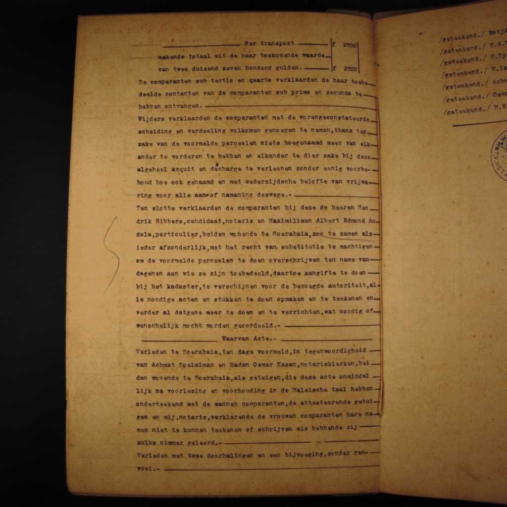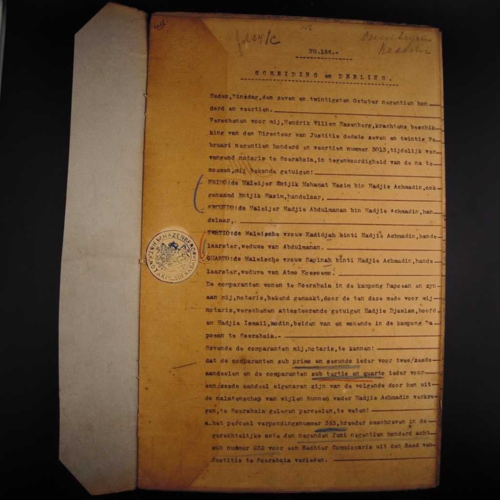 Yang hadir bertempat tinggal di Surabaya di kampung Daposan, diberitahukan kepada saya, notaris, oleh notaris yang hadir di hadapan saya, dengan keterangan saksi Haji Jaelan dan Haji Ismail yang tinggal di kampung daposan di Surabaya