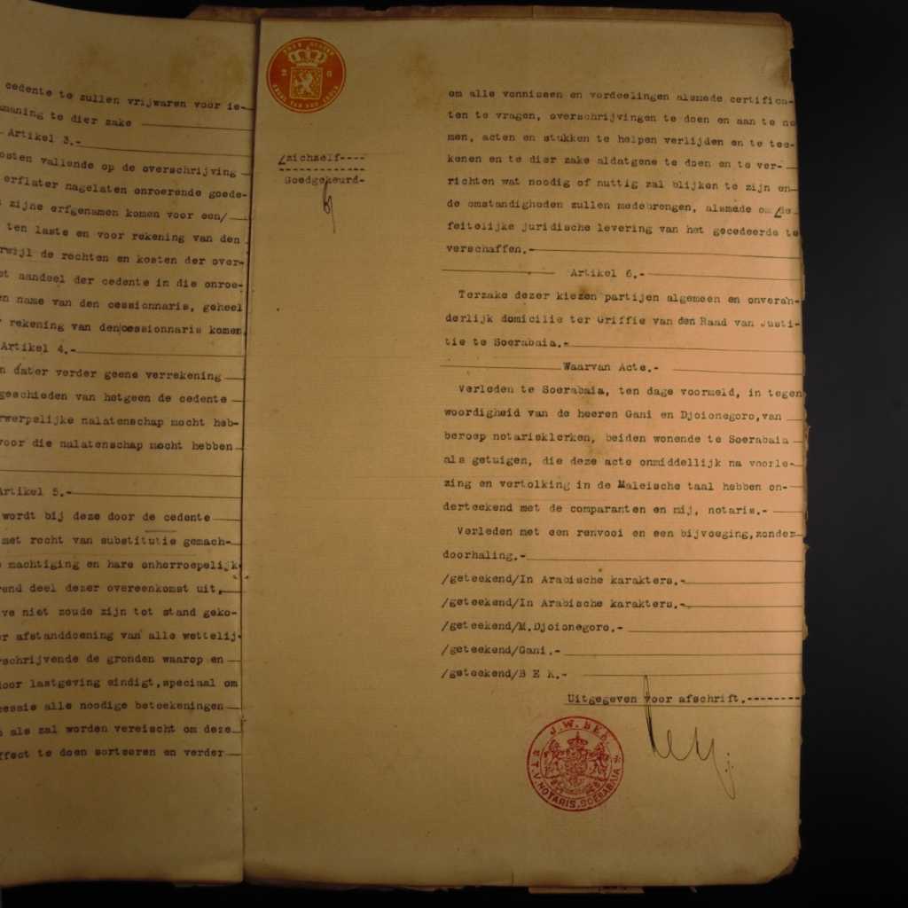 Hadir di hadapan saya, Jan Willem Bek, berdasarkan perintah Direktur Kehakiman tertanggal empat belas bulan seribu sembilan ratus dua puluh enam sekarang, notaris pengganti sementara di Surabaya, dengan dihadiri sebagai berikut saksi