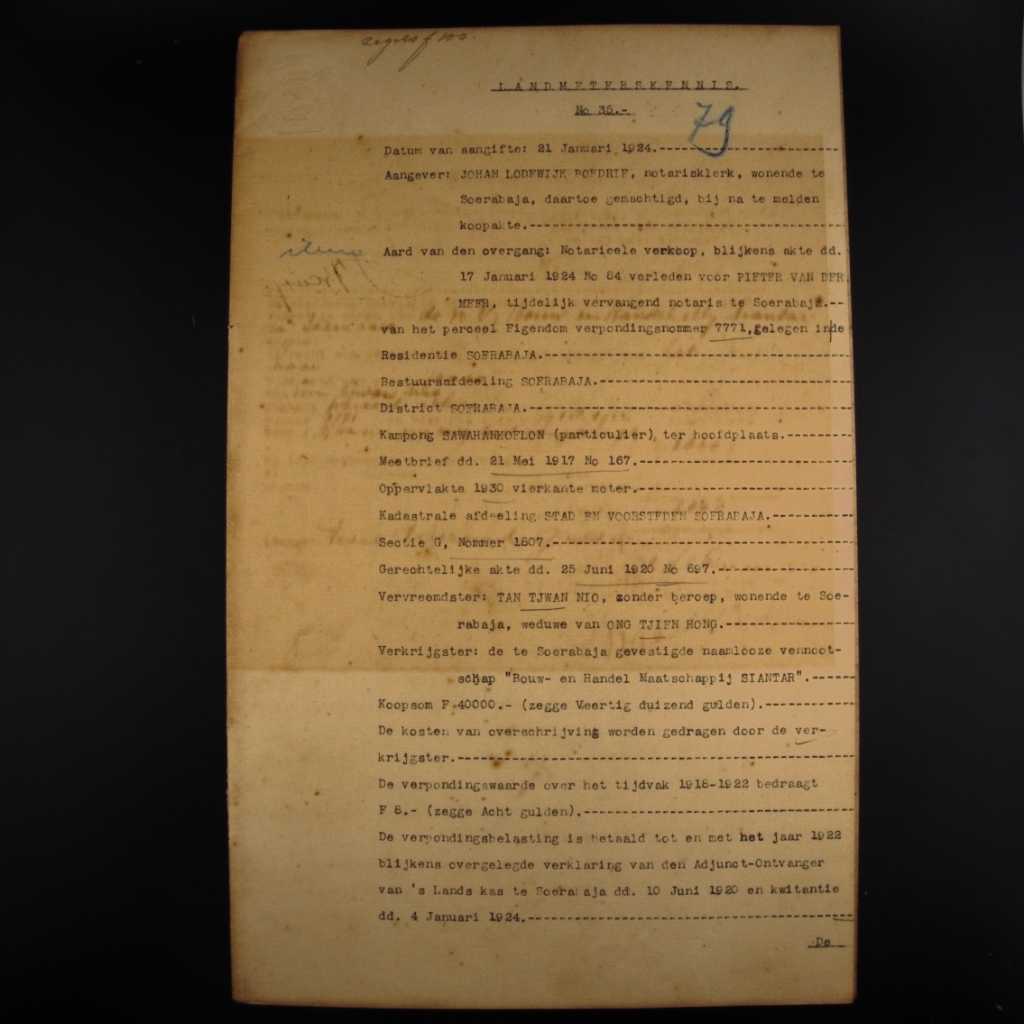 Diuraikan dalam pengetahuan juru ukur tanggal 24 Januari 1924 nomor 35, yang terletak di