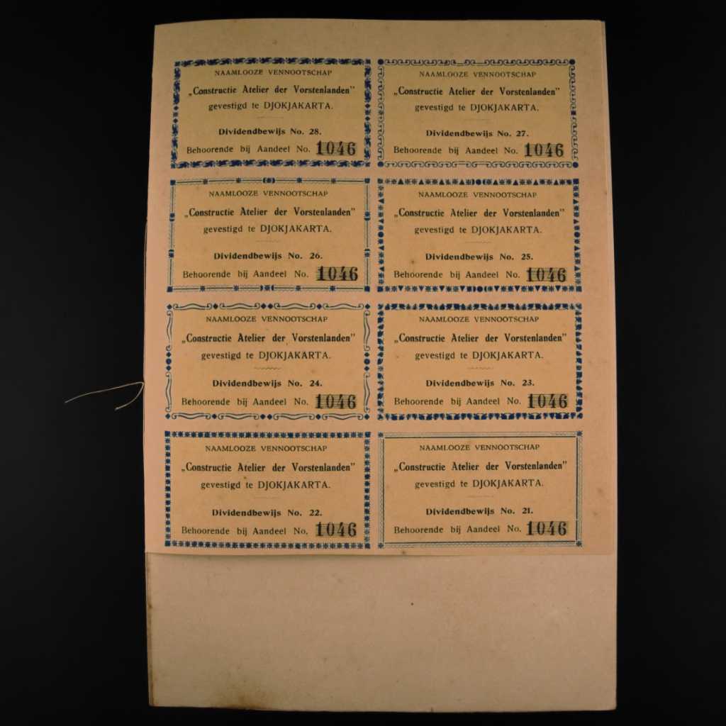 Diterbitkan di Yogyakarta 14 Agustus 1926Dicetak 1200 lembar untuk investasi 600.000 guldenSetiap saham bernilai 500 gulden