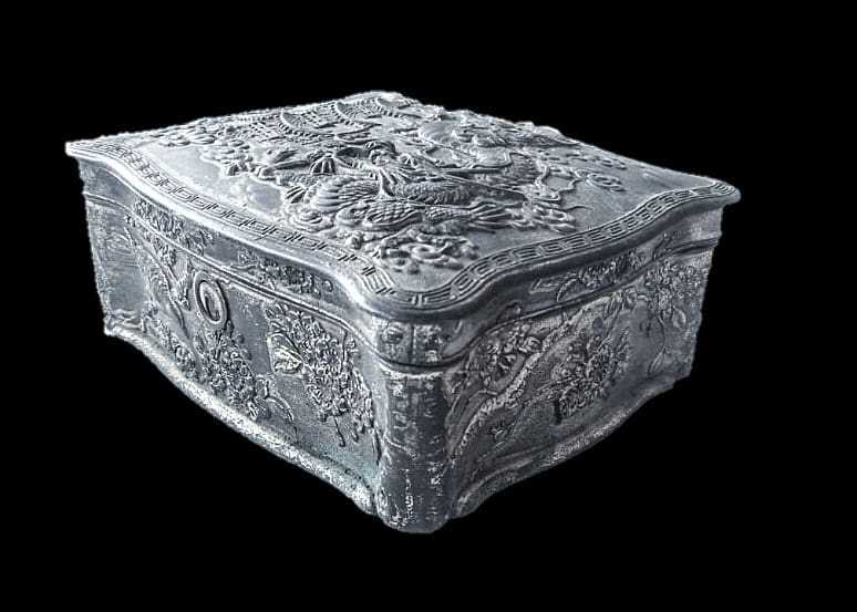 Kotak perhiasan.12,5*10cm, Tinggi 5cm.Origin: Japan, 1930-1940.Material: alpaca, silver plated.