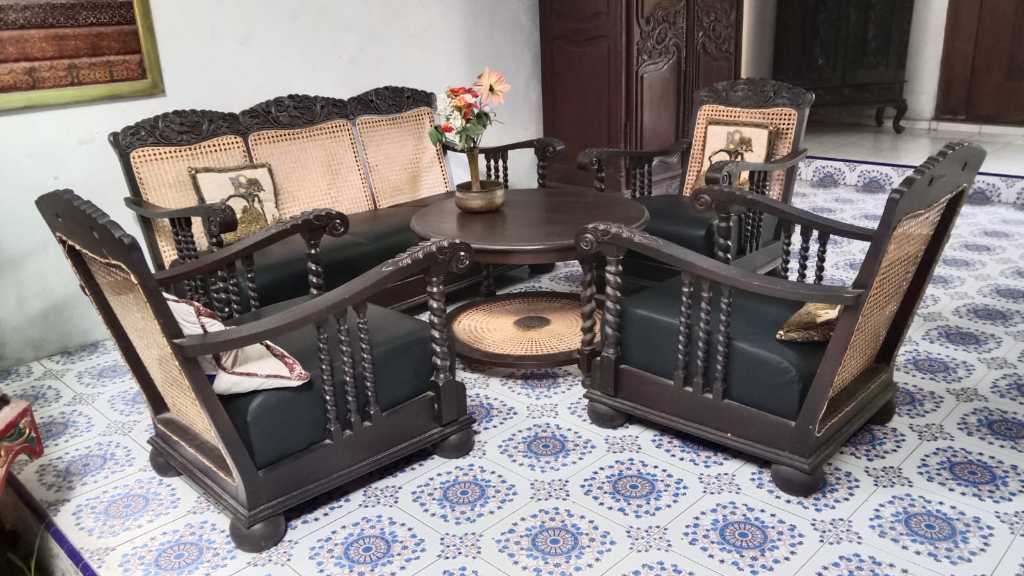 Kursi Tamu Vanderfule Antik - kayu Jati Jok Hitam 1 Set