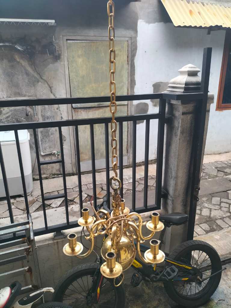Lampu Gantung Antik 6 Tangkai dengan Rantai_Kuningan