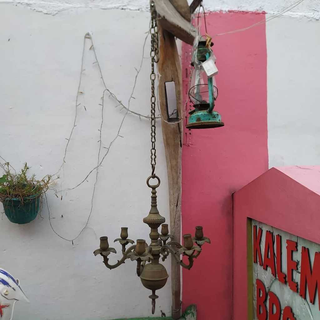 Lampu Gantung Antik 6 Tangkai dengan Rantai_Kuningan