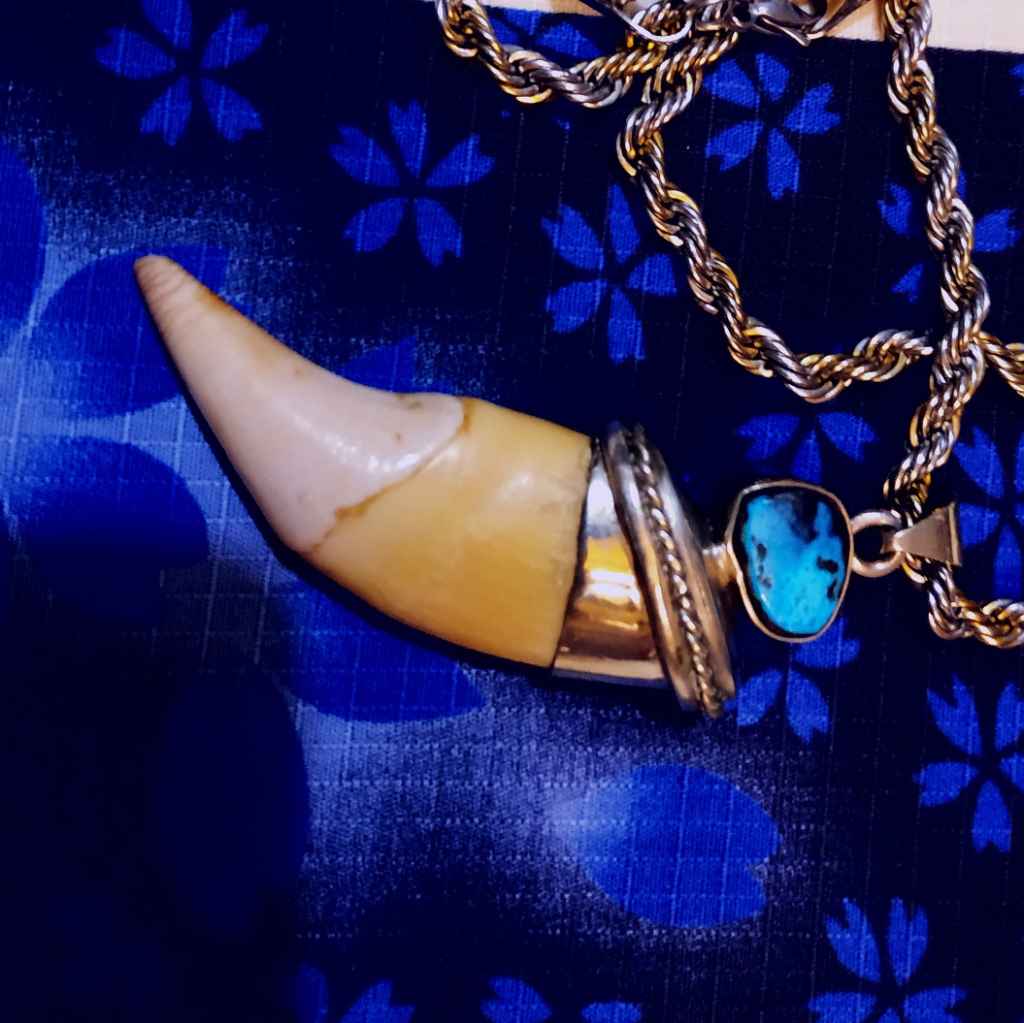 Liontin taring beruang kombinasi batu pirus persia dgn ring perak