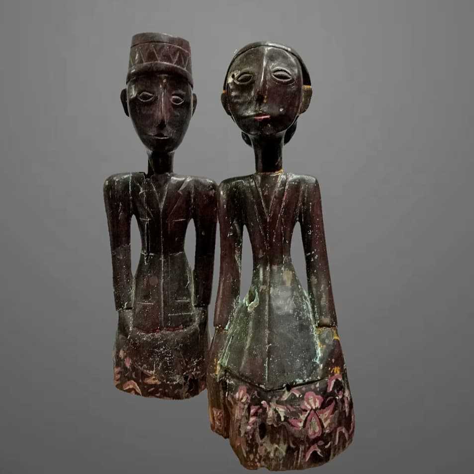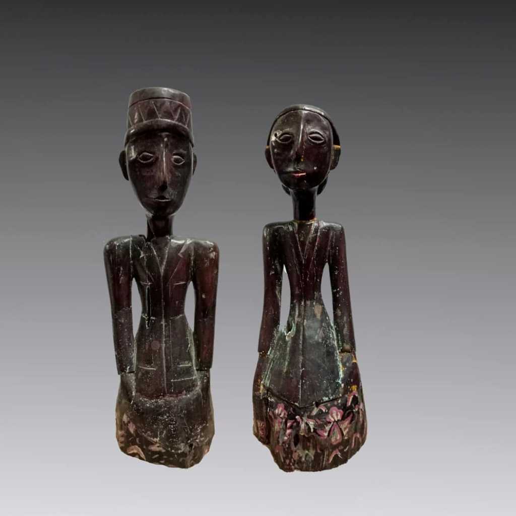 Loroblonyo primitif.Material: kayu.Dimensi: tinggi 38cm (lk), 36cm (pr).Patina bagus, kondisi ada beberapa bagian yang rusak alami.