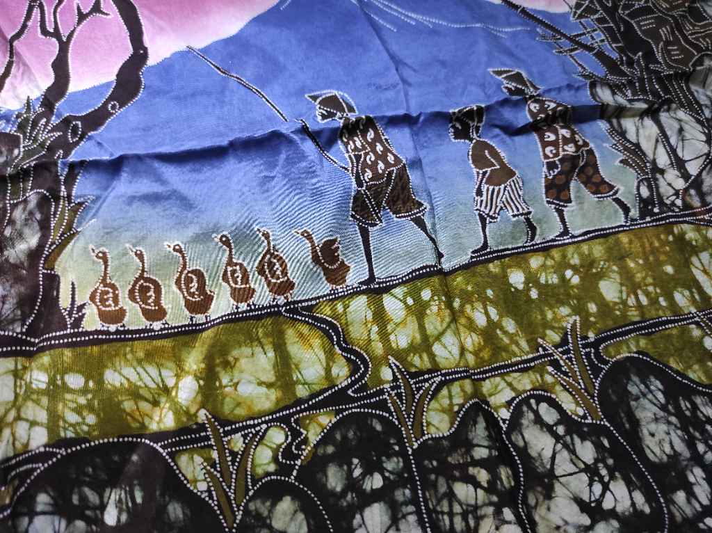 Kami menawarkan lukisan tangan menggunakan bahan pewarna dari batik.