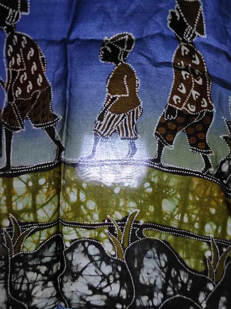 Kondisi: ada lipatan pada kain, bisa hilang bila di lakukan pemasangan figura model di tarik/dibentangkan seperti lukisan kanvas.