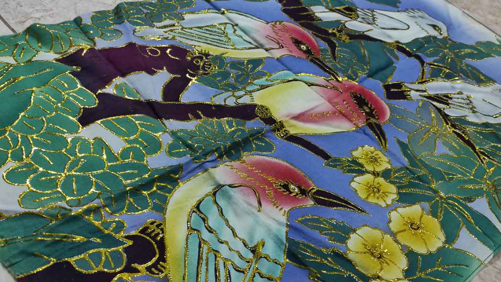 Kami menawarkan lukisan tangan menggunakan bahan pewarna dari batik.