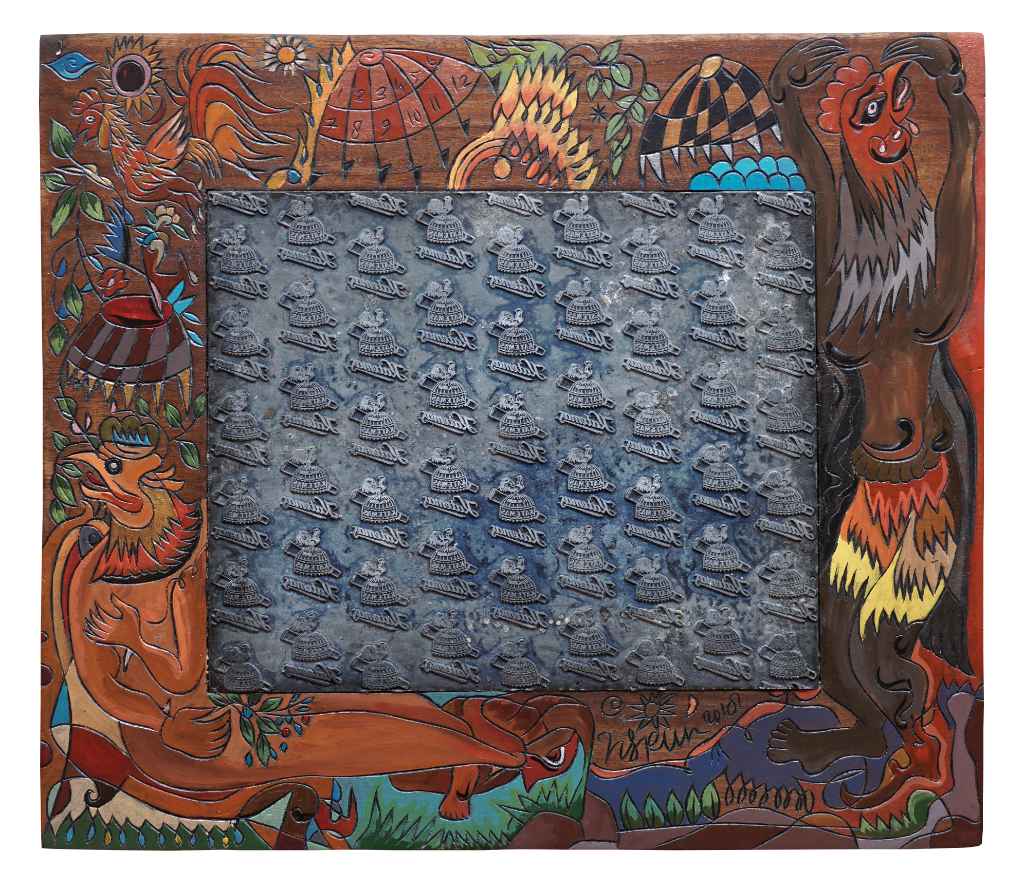 45.5 x 39 cm, Carving, Acrylic & Oil on Wood