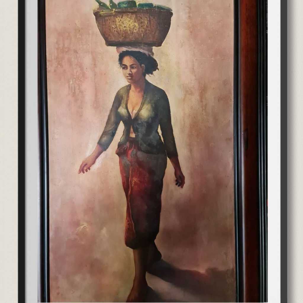 Lukisan Wanita Njunjung KeranjangUkuran Tinggi 130*65cmKarya Pelukis ᴛʀᴜʙᴜꜱ