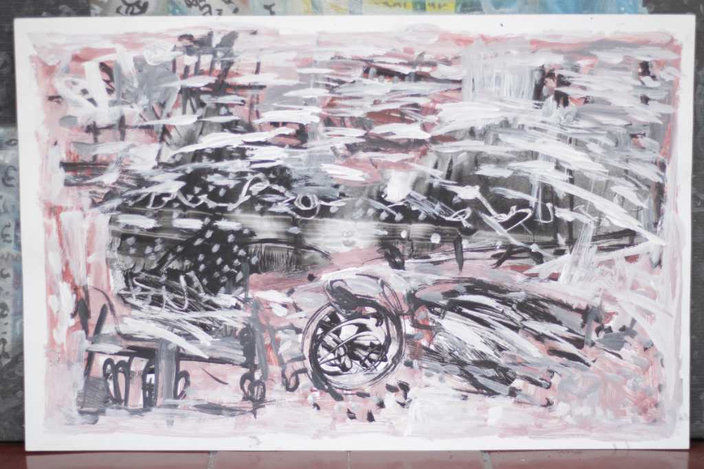 Lukisan akrilik ,tinta diatas kertas ( Angin diatas kota )
