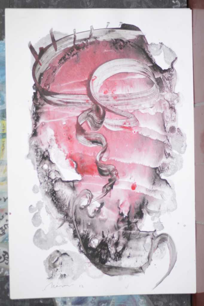 Lukisan akrilik ,tinta diatas kertas ( Kasmaran II )