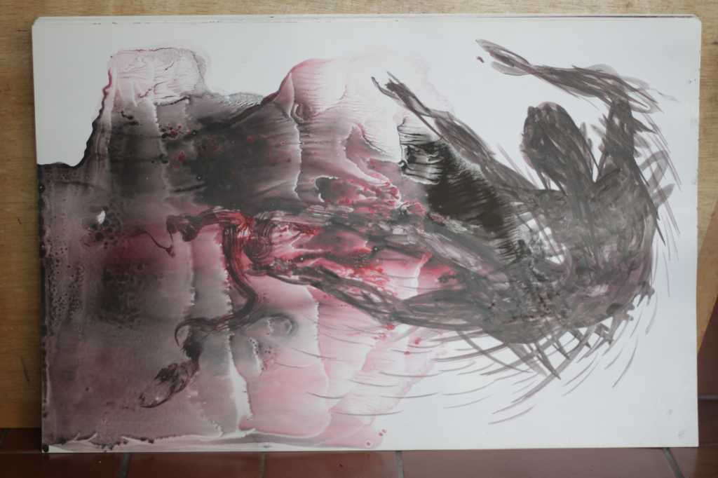 Lukisan akrilik ,tinta diatas kertas ( Melayang )
