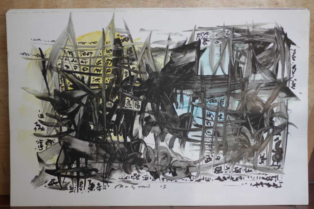 Lukisan akrilik ,tinta diatas kertas ( Menjelang Pagi )