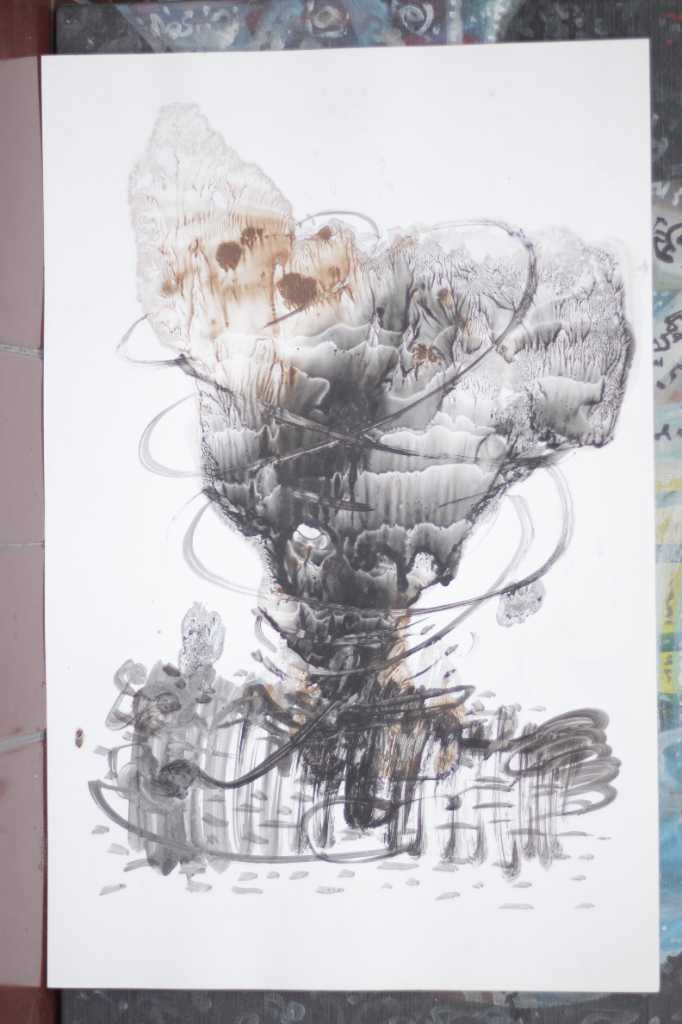 Lukisan akrilik ,tinta diatas kertas ( Pusaran II )