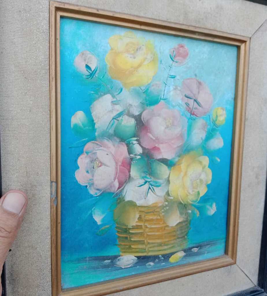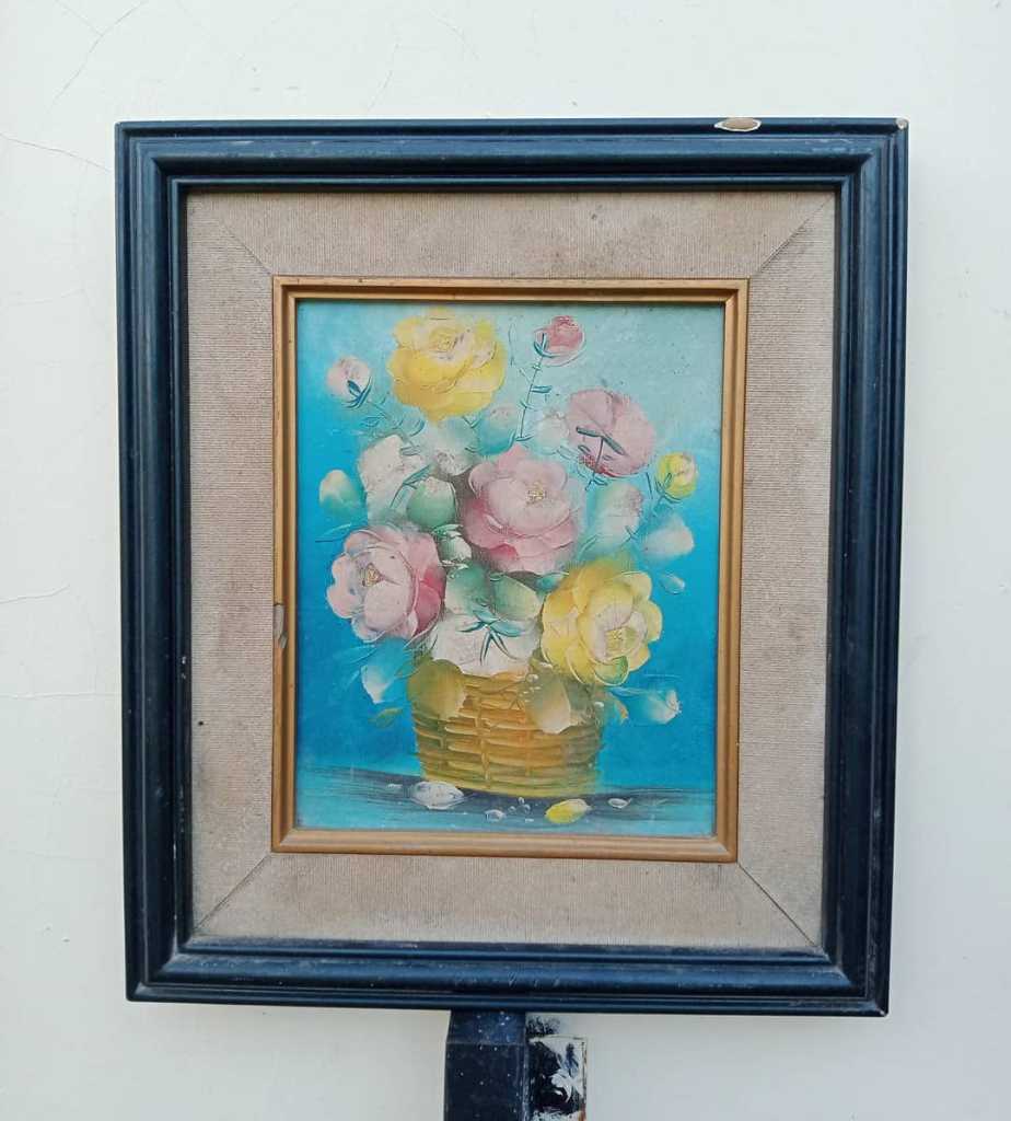 Lukisan kanvas.motif kembang.Siap display ruangan.T.38cm x L.34cm