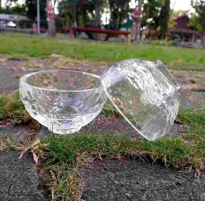 Mangkok kaca mini motif naga timbul Tinggi 6cm Diameter 9,5cm Utuh mulus Bahan kaca *harga sudah termasuk keduanya