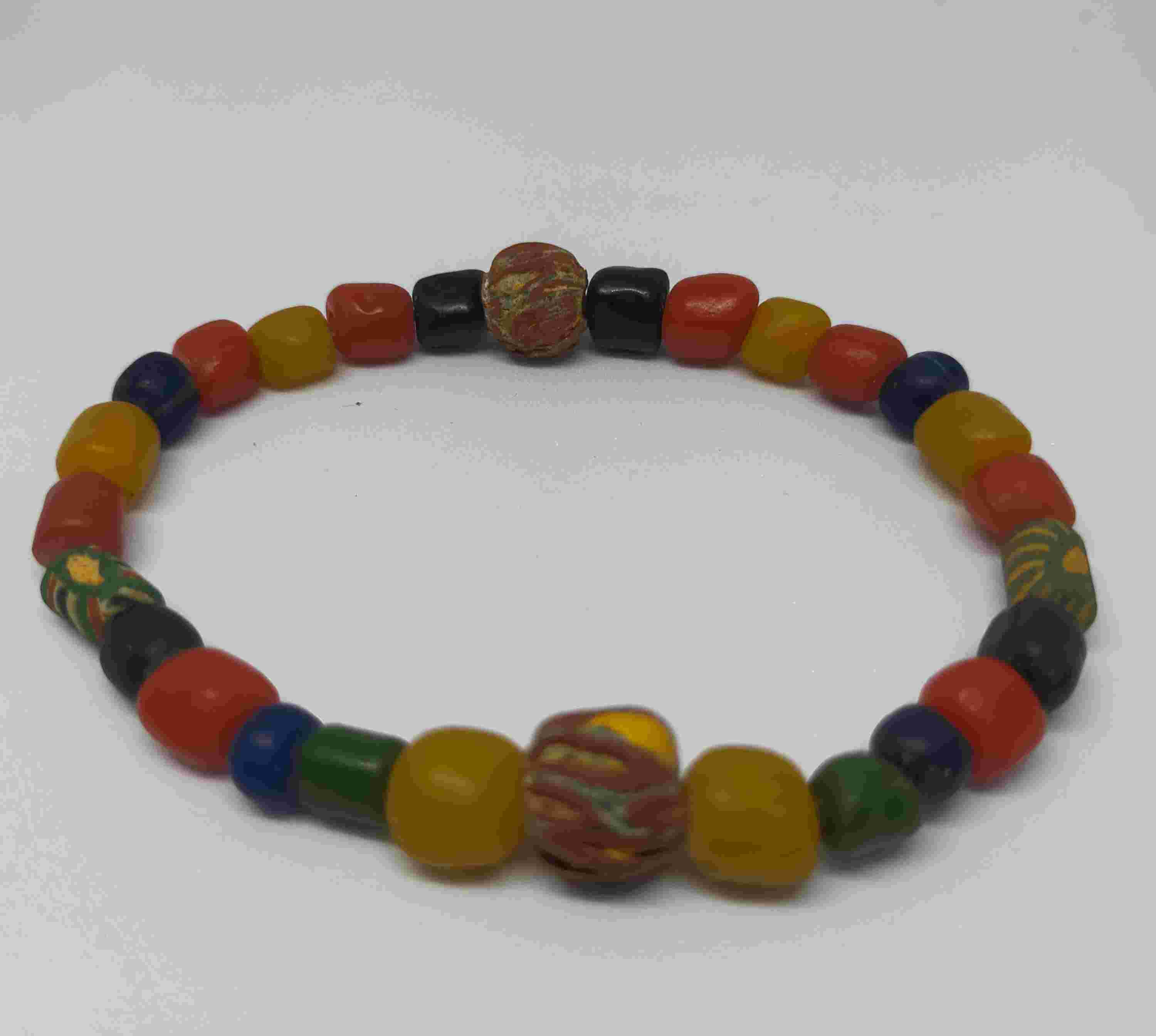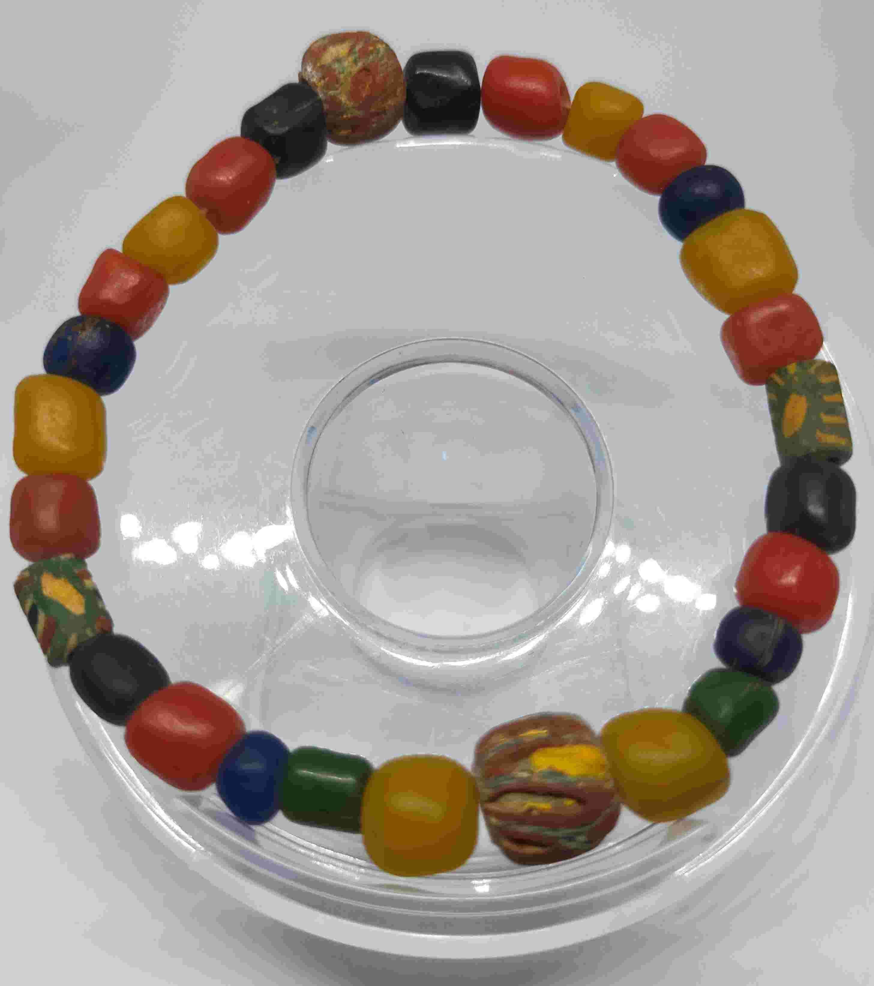 Deskripsi : Ada berbagai bahan yang terindefikasi sebagai bahan pembuatan manik-manik pada masa yang lebih muda dari zaman prasejarah. Manik-manik pada masa ini Umumnya berbahan batu, terakota, kuarsa, carnelian dan calsedon. Manusia prasejarah menggunakan manik-manik berbahan kayu, tulang dan cangkang kerang. Pada masa Hindu Budha di Nusantara, manik-manik digunakan untuk upacara keagamaan, sebagai perhiasan dan benda yang diperdagangkan. Beberapa arca kuno sering digambarkan menggunakan untaian manik-manik pada leher/badan mereka. Artefak manik-manik ini diperkirakan berasal dari zaman muda sekitar abad 11-12SM.