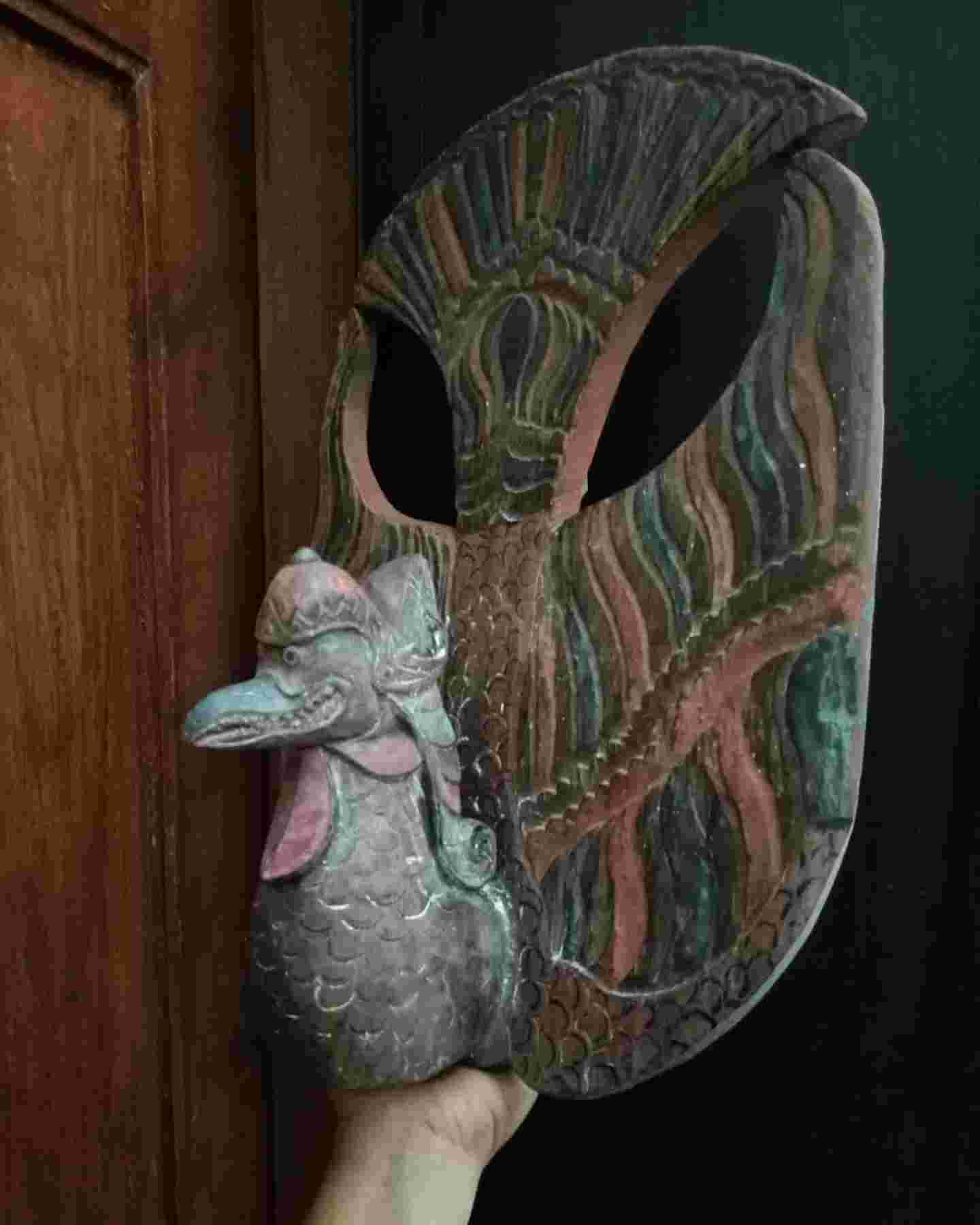 Manuk Beri ,Urnament rumah Jawa Tinggi 43 cm ,lebar 31 cm Kayu Jati