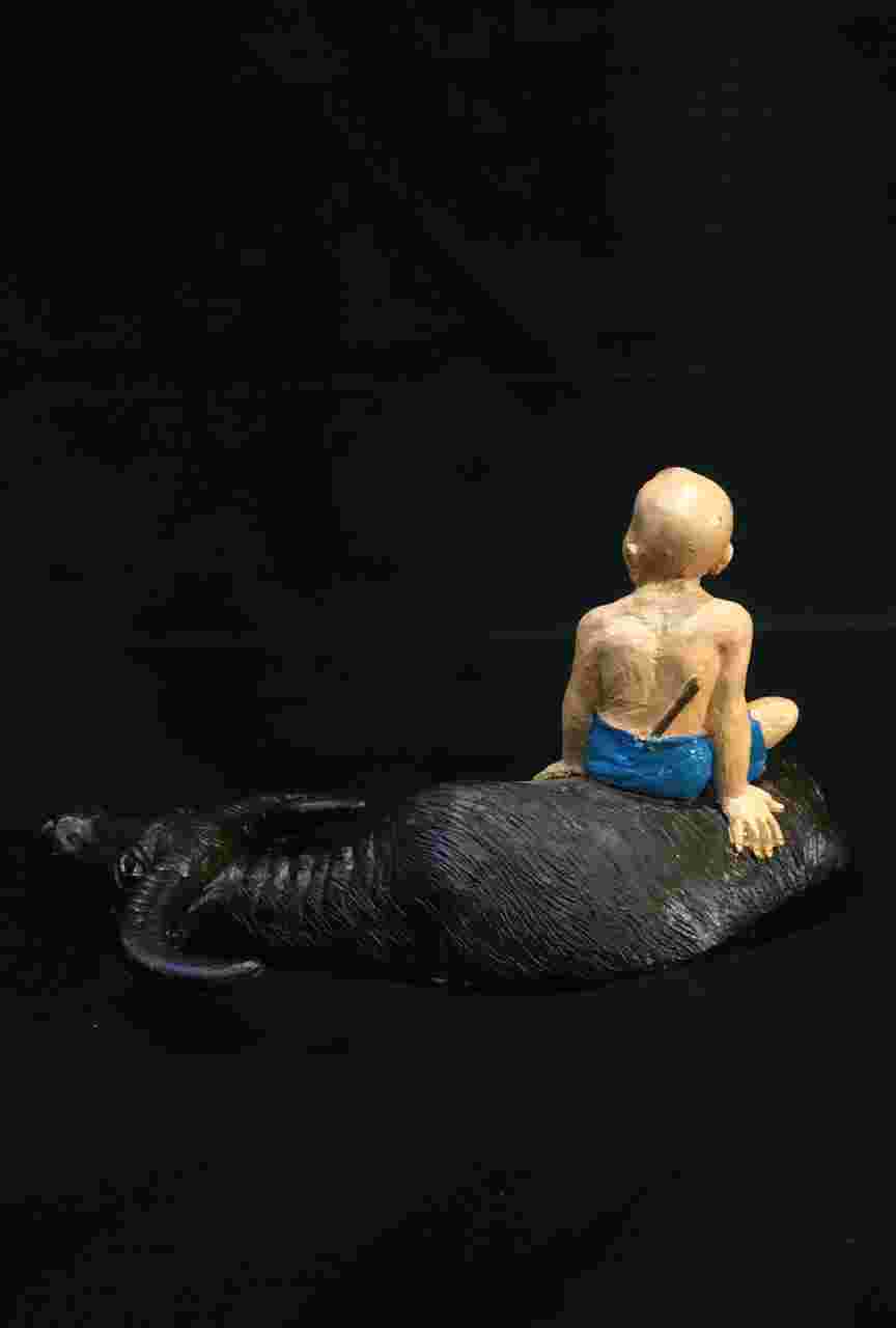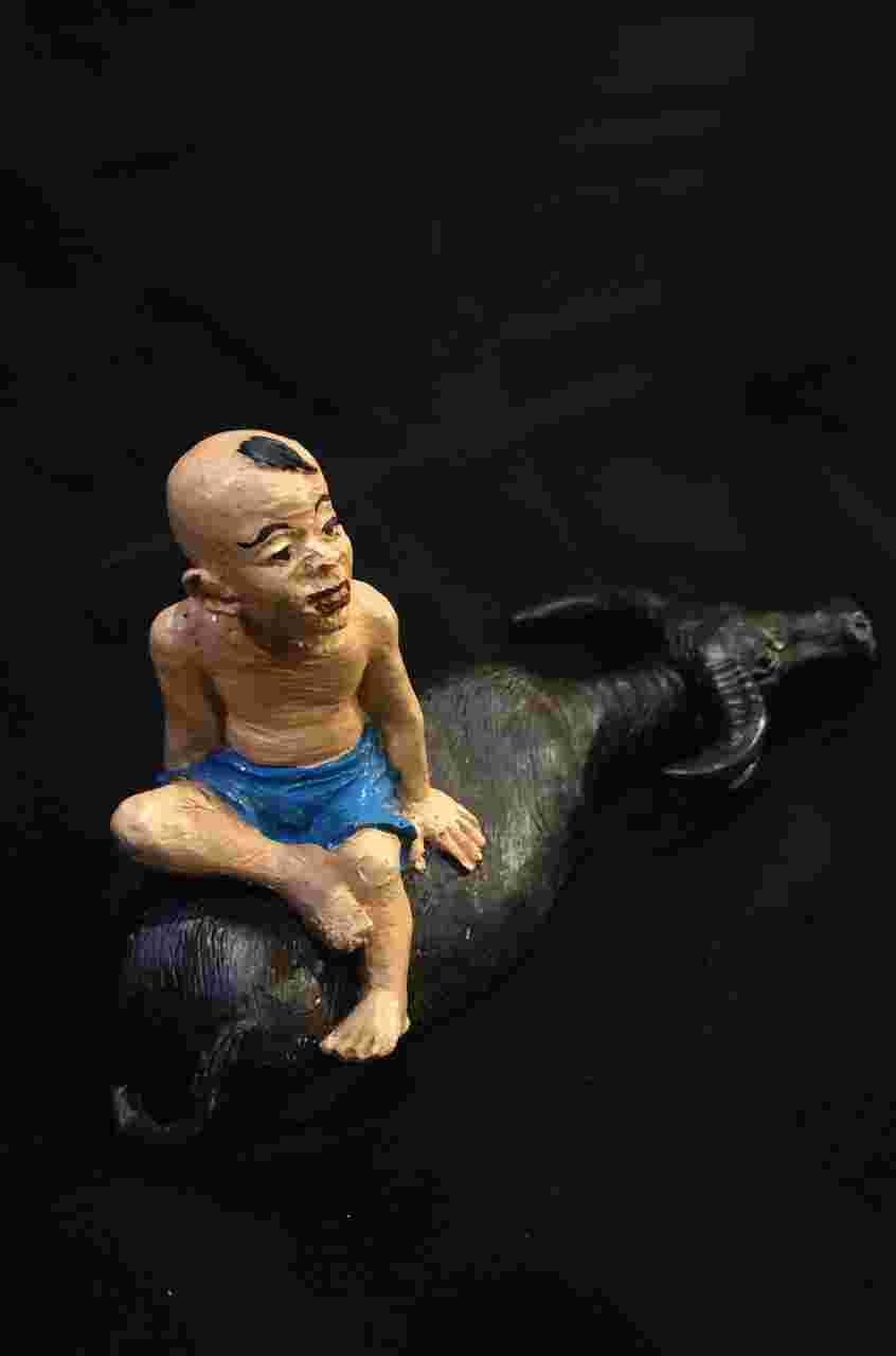 Pajangan anak dan kerbau Tinggi 9cm Panjang 17cm Utuh mulus Bahan presin