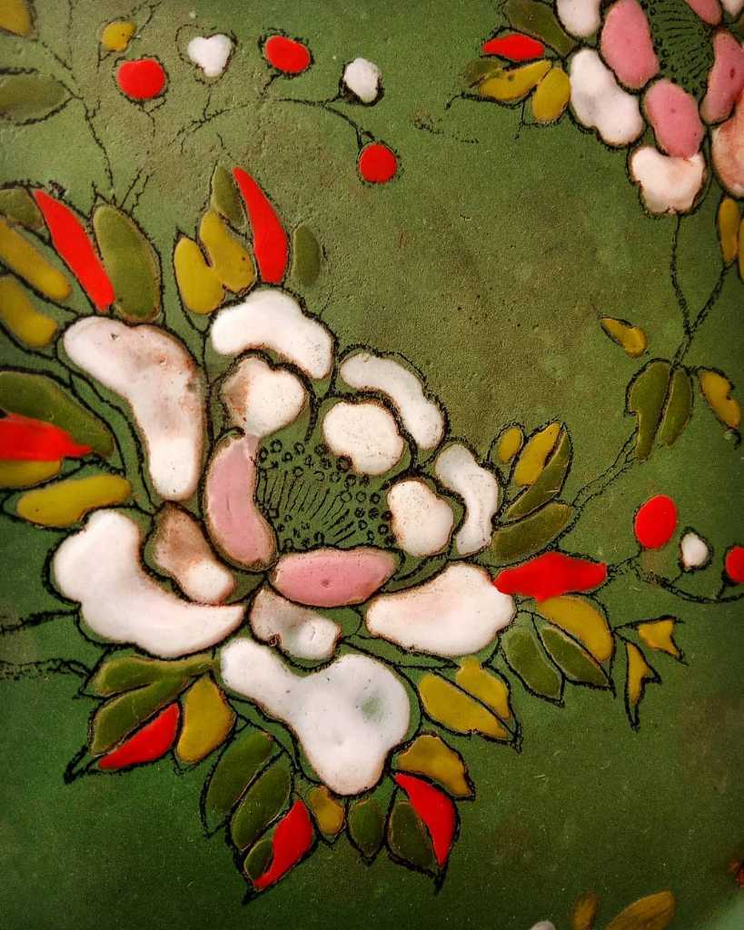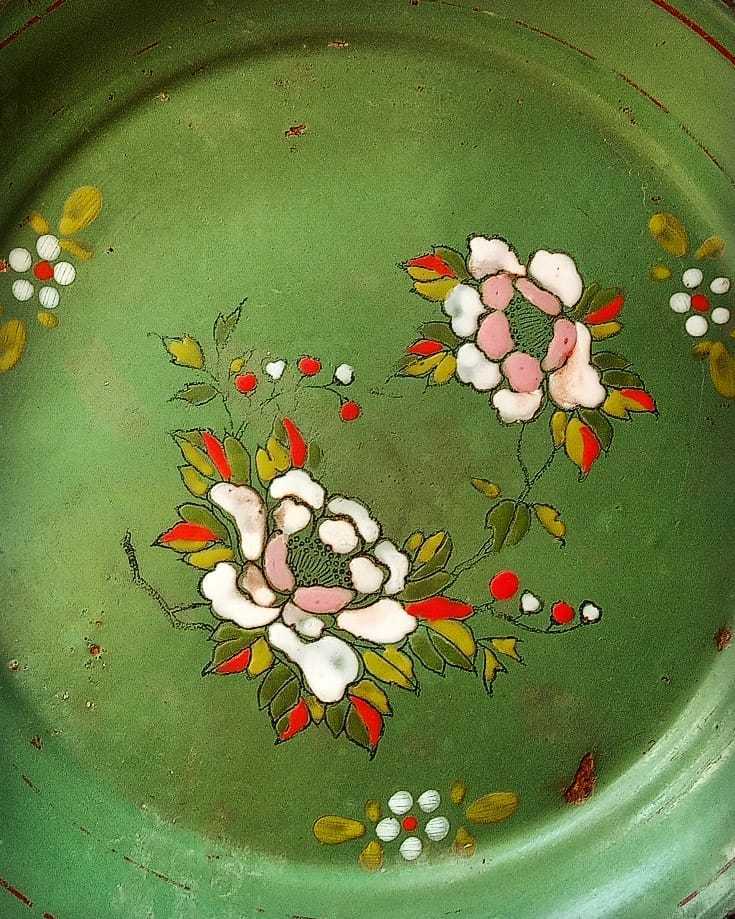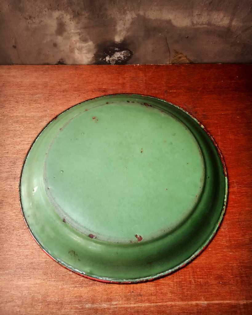 Npan enamel lawas, motif bunga timbul.Kondisi masih cukup bagus..Diameter 28,5xm.