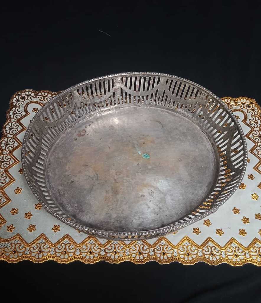 Nampan eropa silver Plate bisa di fungsikan tempat buah atau Tempat kristal kinangan. DLL.