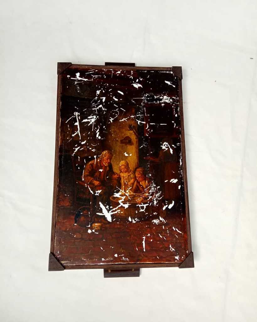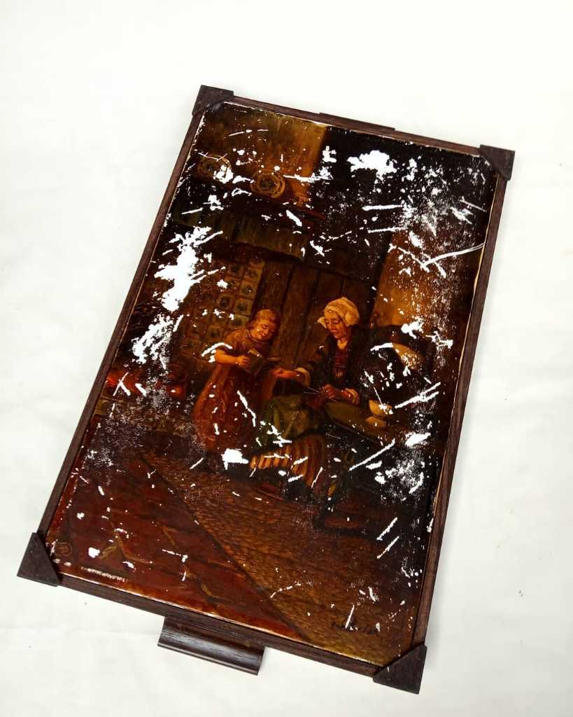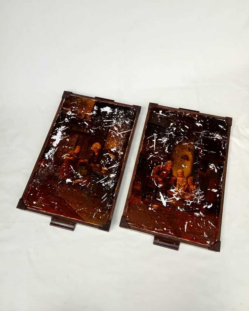 Bukan nampan biasa.. Sepasang Nampan lawas yang dilukis pada bagian belakangnya.. Atau.. Mungkin dulunyavlukisan diatas lembaran porcelain, dan dibuat nampan. Karena ada bagian pinggir di lukisan yang bekas pigura.