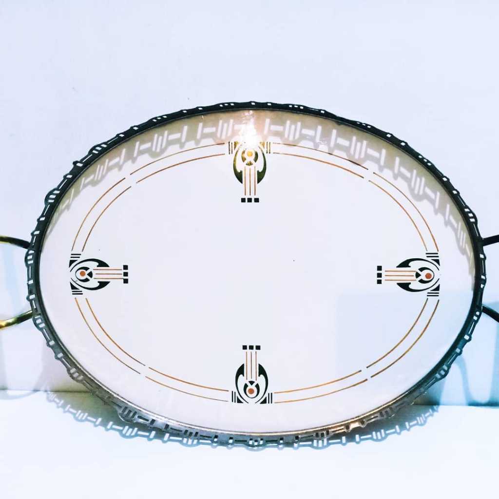 Nampan atau baki kunoBahan porcelainRingi bahan kuningan lapis perakUkuran :Panjang 51cmLebar 30cmPanjang ring 40cm