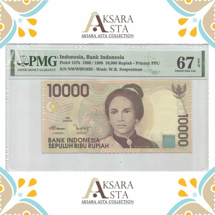 New PMG Desain 10rb Rupiah Uang Indonesia Th 1998 PMG 67 EPQ