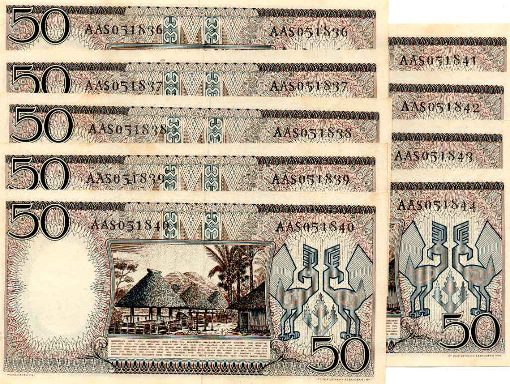 Nama barang : Uang Kuno Indonesia 50 Rupiah Seri Pekerja I Urut 9 Lembar