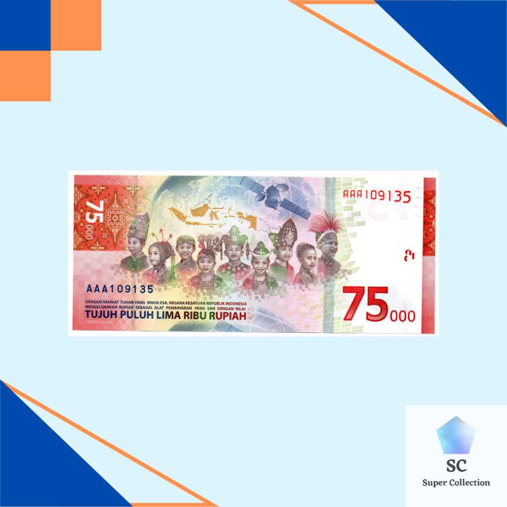 Nama barang : Uang Indonesia UPK 75000 Rupiah Edisi Kemerdekaan 75 Tahun Prefix AAA