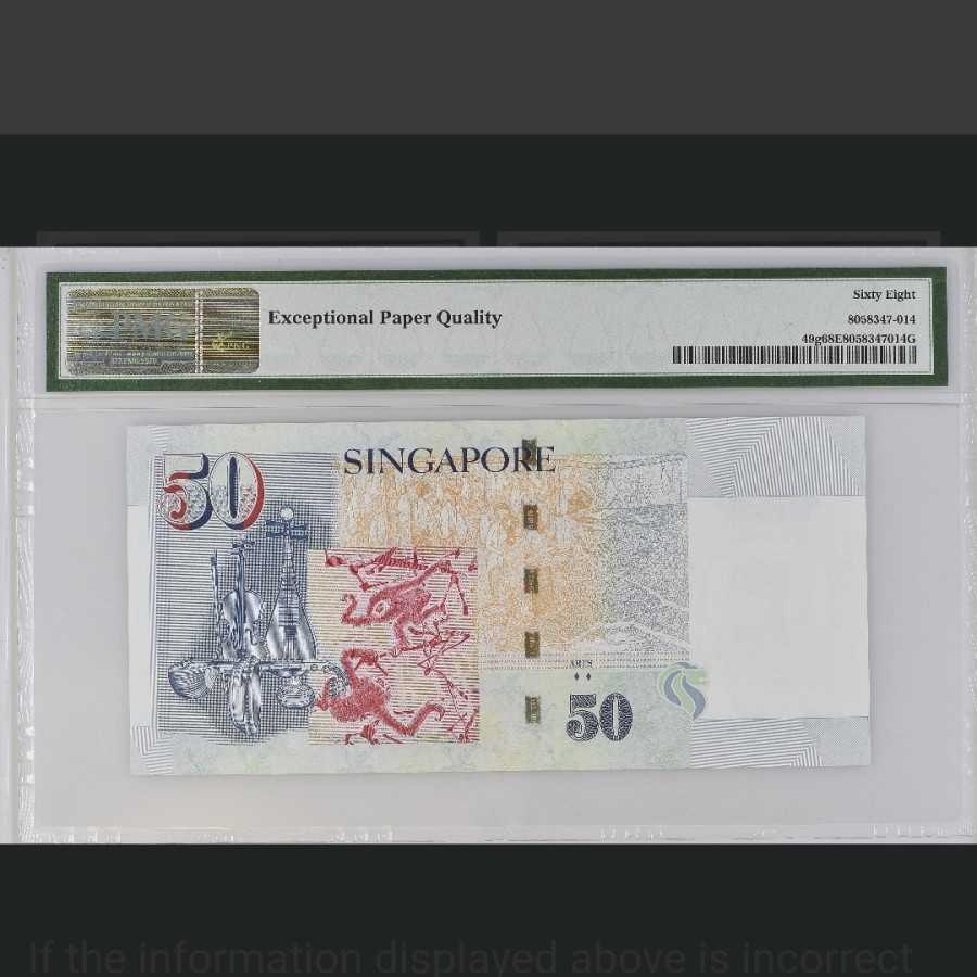 PMG 68 EPQ Singapore 50 dollars 2014 4 BT 444444 super solid 4's