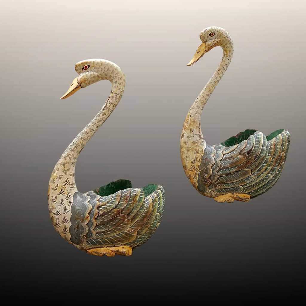 Vintage wooden swan statues.Material: kayu.
