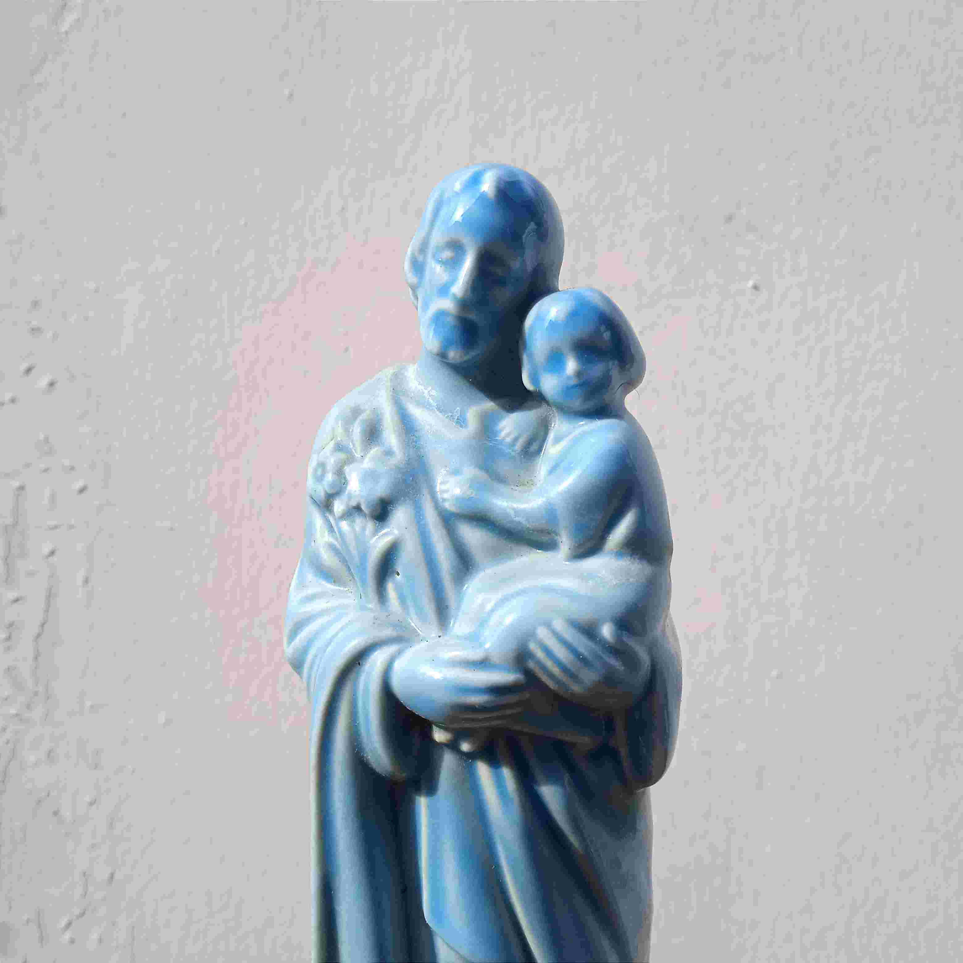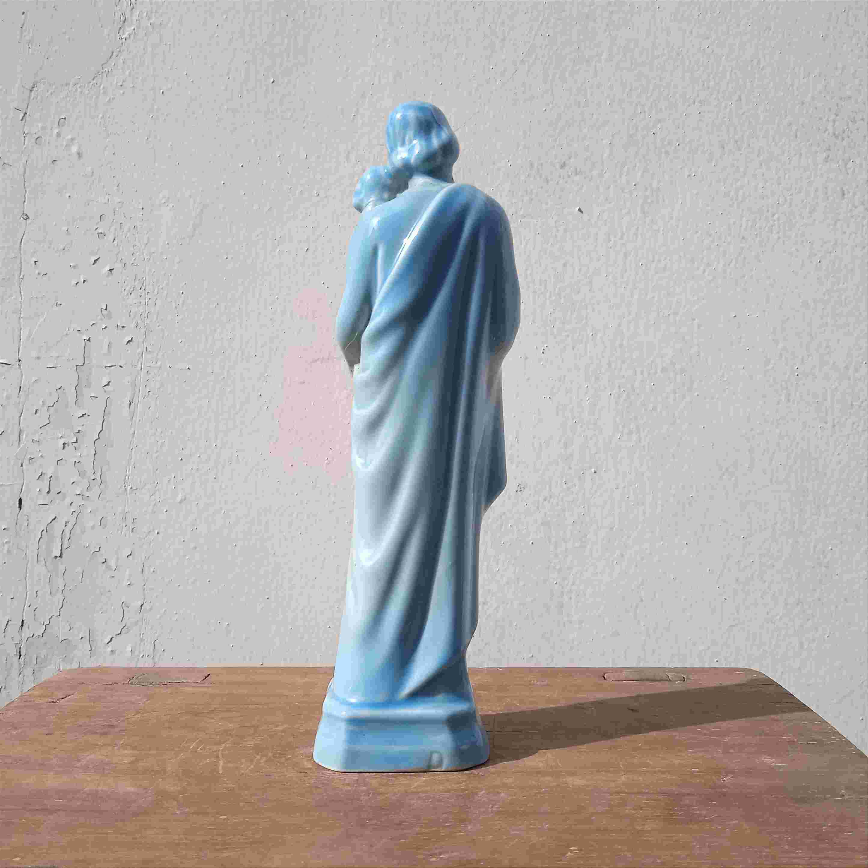 Patung Antik Porselen Santo Yusuf Warna Biru Utuh T.17,5cm