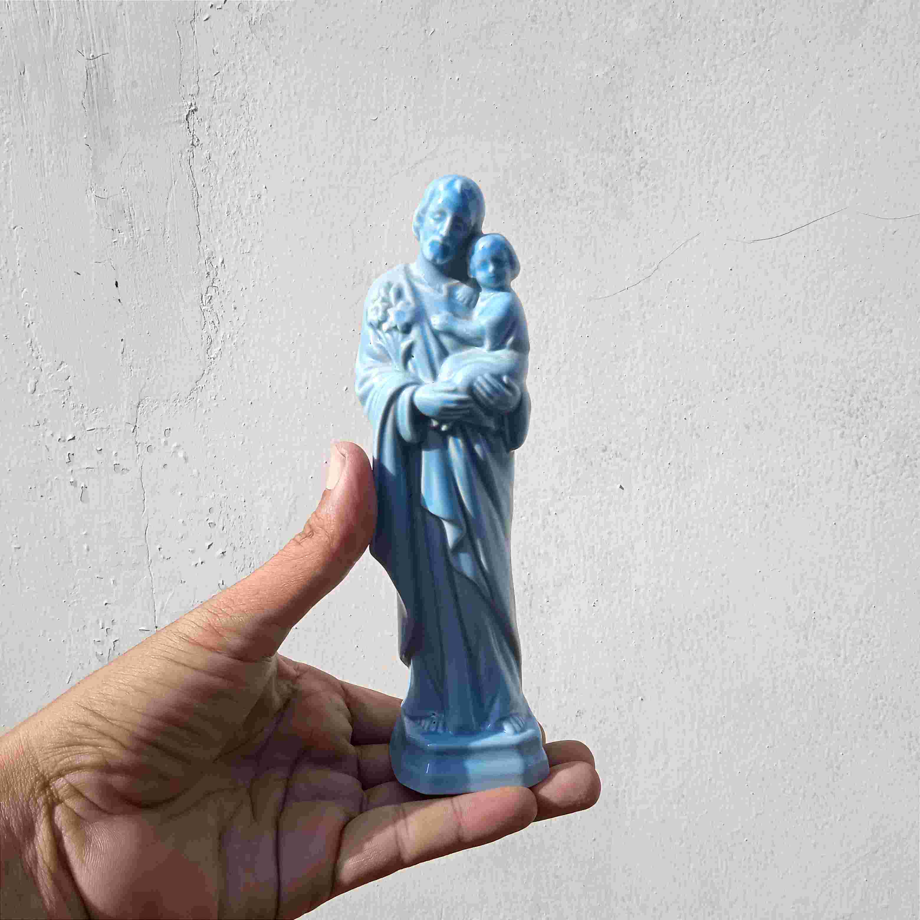 Patung Porselen Santo Yusuf Katolik Warna Biru T.17,5cm Kondisi Utun Minat Silahkan