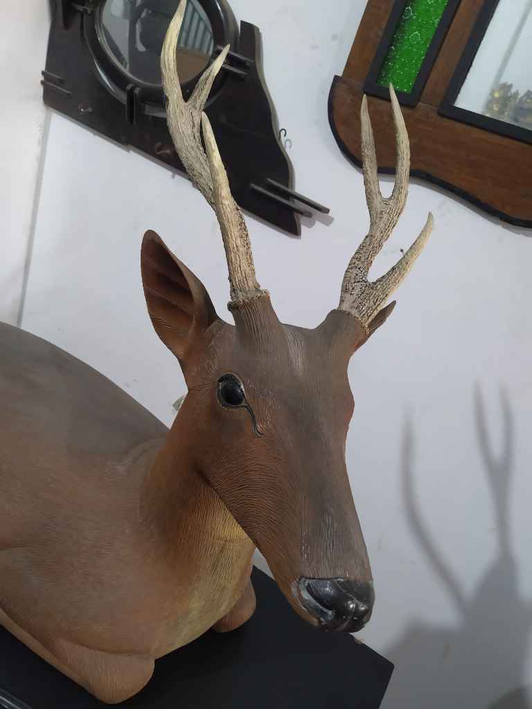 Patung kayu ukir rusa + tanduk