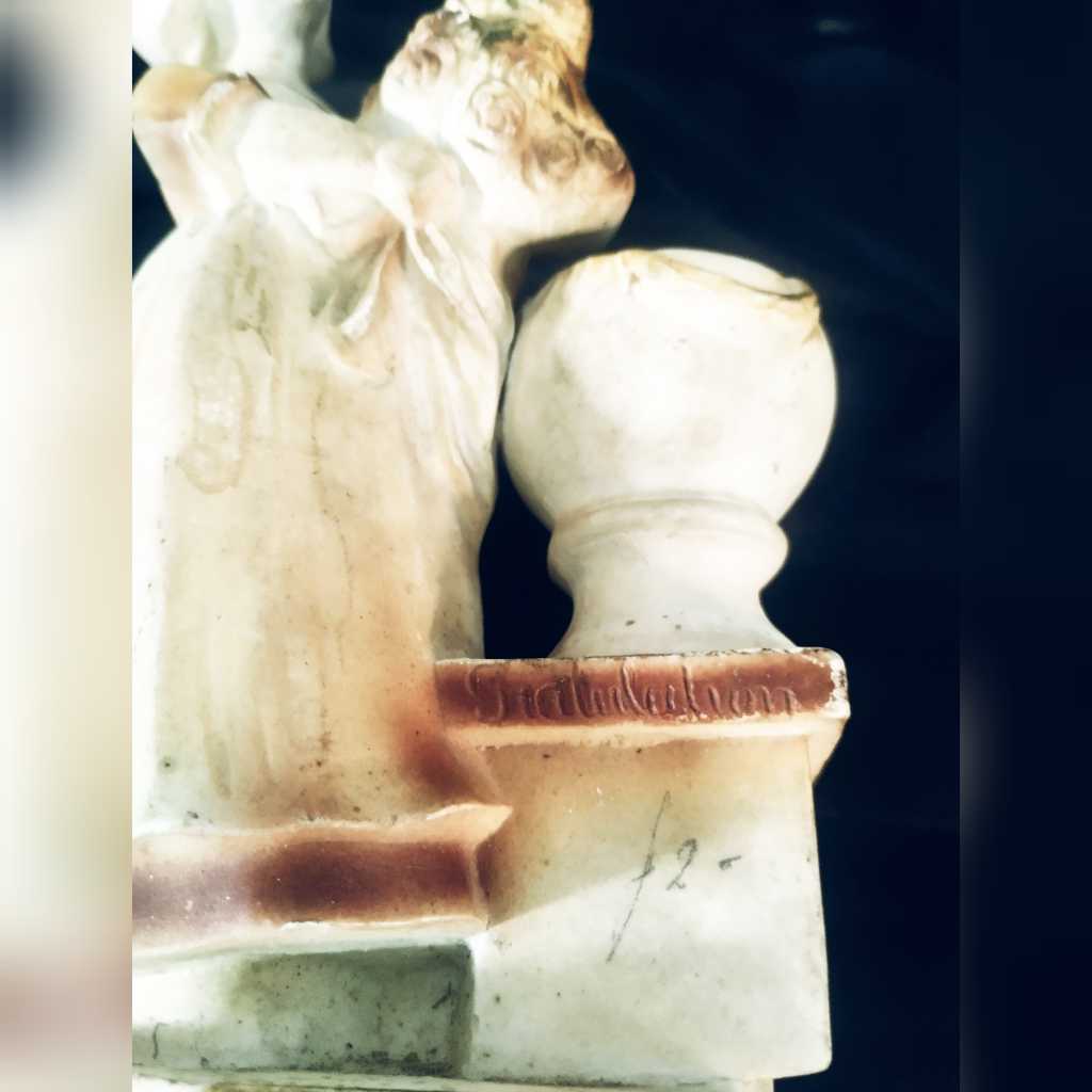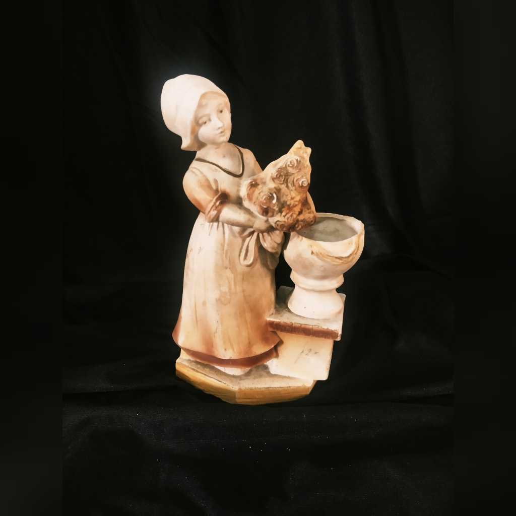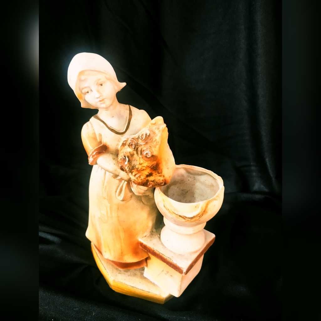Patung Eropa Gadis Membawa Bunga Original Kuno